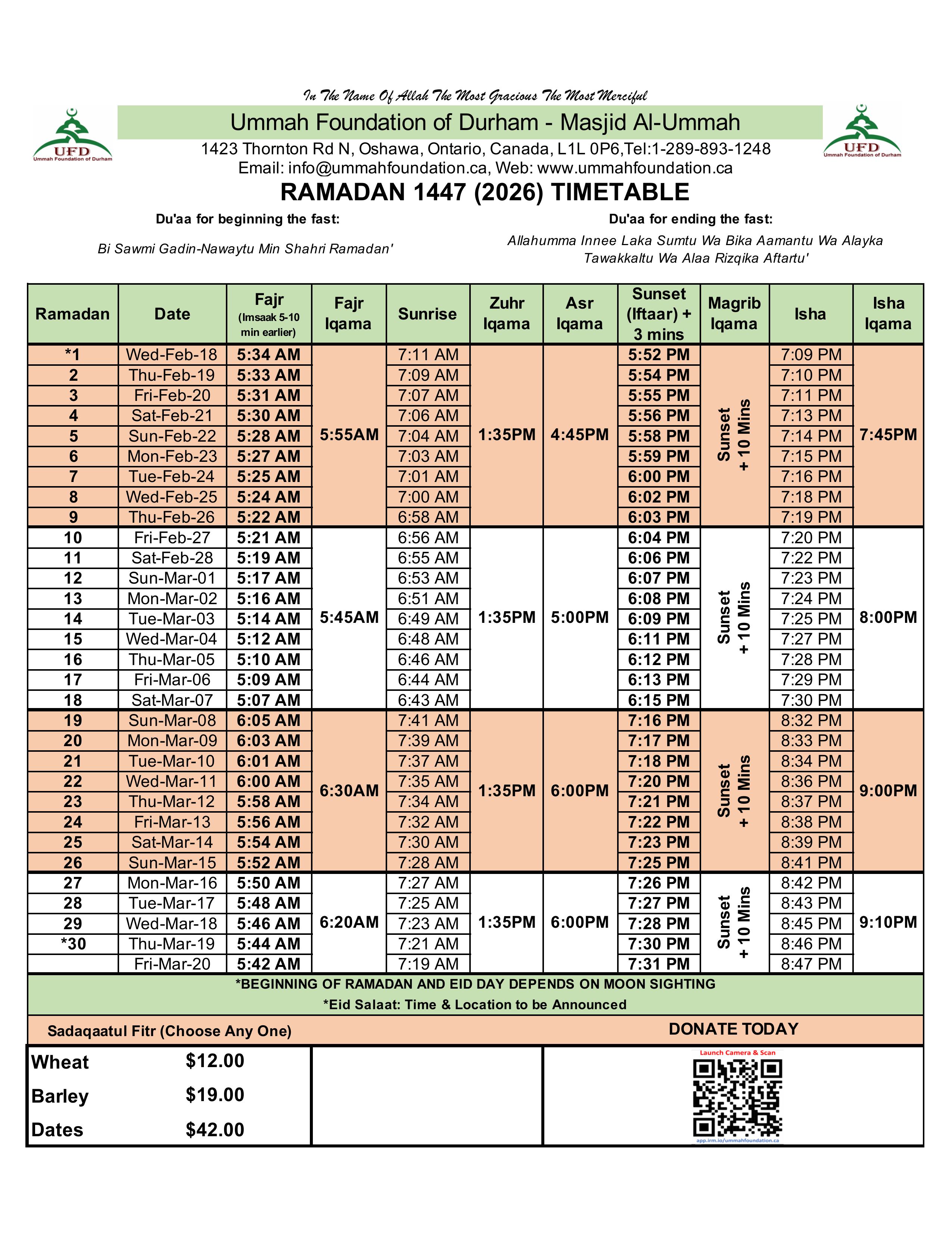 | Fajr | 5:39AM | 6:20AM | 6:30AM |